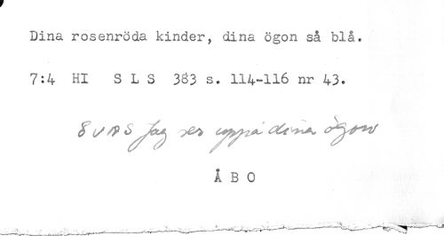 //// Dina rosenröda kinder, dina ögon så blå. //// 7:4 Hl SLS 3^3 s. 114-116 nr 43. //// ÅBO ////