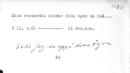 //// ^ ' " ' ' - i //// Dina rosenröda kinder dina ögon så blå... //// - * //// ,. //// v //// B 11, s.66 --—----- 11 str.kom. //// < //// RA //// - * * ' ' //// 1 ////