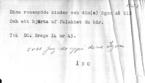 //// Dina rosenrödz kinder och din(a) ögon så blA S. //// Och ett hjärta af falskhet du bär. j //// 7:4 BO. Brage 14 nr 4$. ^ i , //// y^^f ^ ^ ^^ ^^ ! //// * //// ÅBO j ^ //// Éh M i ////