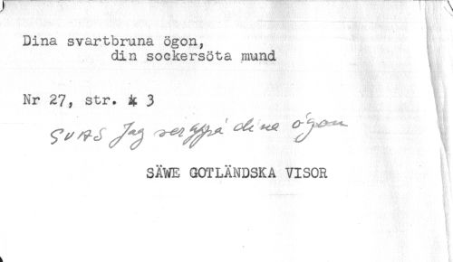 //// Dina svartbruna ögon, //// din sockersöta mund //// Nr 27, str. % 3 //// SÄWE GOTLÄNDSKA VISOR //// ' t ////