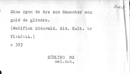 //// ^ Dina ögon de ärs som demonter som t //// guld de glindra. //// (Wahlfisk Södermld. äld. Kult. tr H //// Vl:42:44.) ! //// s 393 i //// SODLING MS //// mel.not, //// - //// ^ ! ////