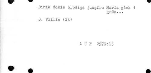 //// Dinia donia blodiga jungfru Maria gick i //// gräs... //// S. Villie (Sk) //// L U F 2579:15 //// l) Hr* ////