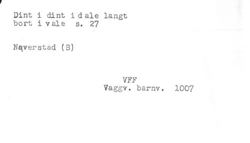 //// Dint i dint idale långt //// bort i vale s. 27 //// Näverstad (B) //// VFF //// Vaggv. bamv. 100? //// * ////