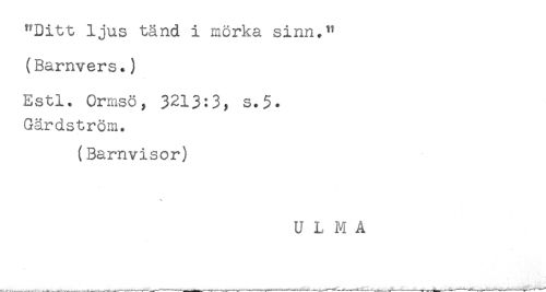 //// "Ditt ljus tänd i mörka sinn." //// (Barnvers.) //// Esti* Crmsö, 3213:3, s.5. //// Gärdström. //// (Barnvisor) //// U L M A ////