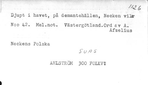 //// Djupt i havet, på demantehällen, Necken vila- //// ...... ' - - - - . . ' I //// ! //// N:o 42. Mel.not. Västergötland.Ord av A. //// Afzelius //// Neckens Polska //// AHLSTRQ[4 300 FOLKV^ ////