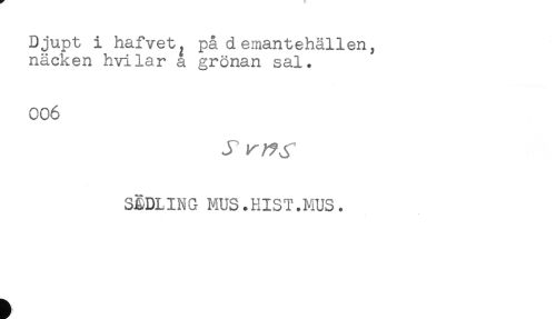 //// Djupt i hafvet. på demantehällen, //// näcken hvilar a grönan sal. //// 006 //// SRDLING MUS.HIST.MUS. ////