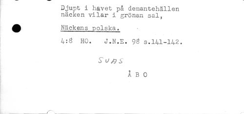 //// Jjupt 1 hgvet pa demantehällen //// näcken vilar i grönan sal, //// ^ Näckens polska. //// 4:6 HO. J.N.E. 96 s.141-142. //// ÅBO ////