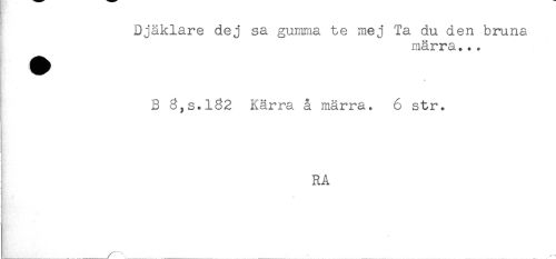 //// Djäklare dej sa gumma te mej Ta du den bruna //// märra..* //// * //// B 3,s.l32 Kärra å märra. 6 str. //// RA //// ) //// :....... ......._____ ____ ////