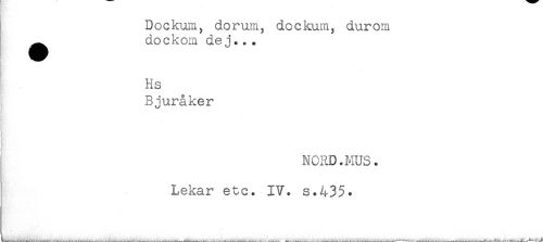//// Dockum, dorum, dcckum, durom //// ^ dockom dej... //// Hs //// Bjuråker //// t //// NORD.HUS. //// Lekar etc. IV. s.435* ////