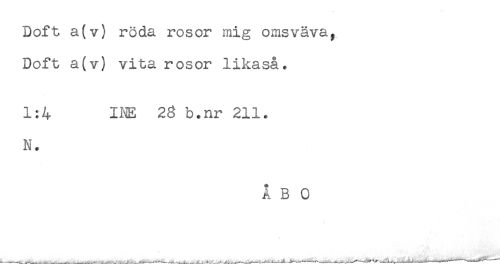//// Doft a(v) röda rosor mig omsväva, //// Doft a(v) vita rosor likaså. //// 1:4 INE 23 b.nr 211. //// N. //// ÅBO ////