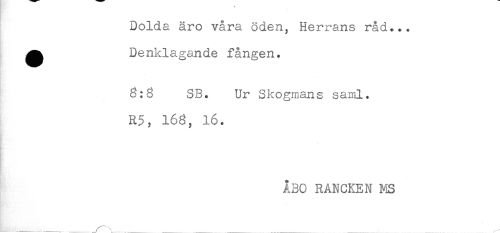 //// Dolda äro våra oden, Herrans råd... //// ^ Denklagande fången. //// SB. Ur Skogmans saml. //// R5, 168, 16. //// ÅBO RANCKEN MS ////