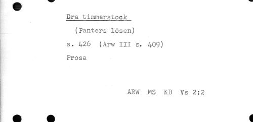 //// Dra timmerstock //// *' ' ' ' ' ' ... //// (Panters lösen) //// s. 426 (Arw III s. 409) //// Prosa //// - < //// ARW MS KB Vs 2:2 ////