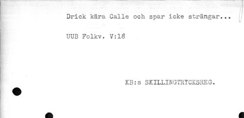 //// ' //// . . .< . ... . -< -.. - - . ... . - ' //// Drick kära Calle och spar icke strängar... //// $ //// t s //// * //// UUB Folkv. V:13 //// * //// KB:s SKILLINGTRTCKSREG. ////