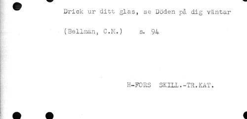 //// Drick ur ditt glas, se Döden på dig väntar //// (Bellman, C.M.) s. 94 //// * //// H-FORS SKILL.-TR.KAT. ////