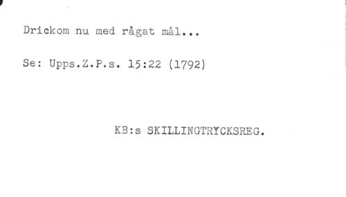//// ) //// Drickom nu med rågat mål... //// Se: Upps.Z.P.s. 15:22 (1792) //// KB:s SKILLINGTRYCKSREG. ////