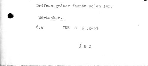 //// Drifean gråter fastän solen ler. //// - //// . //// i ^ Wårtankar. //// ; 6:4 INE g s.52-53 //// ÅBO ////