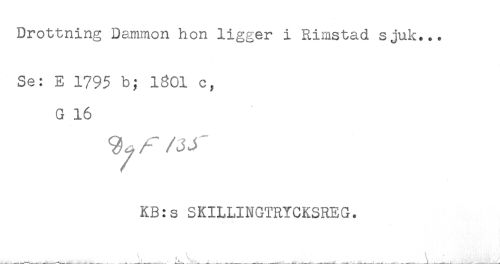//// Drottning Dammon hon ligger i Rimstad sjuk... //// Se: E 1795 b; 1801 c, //// G 16 //// 9 //// KB:s SKILLINGTRYCKSREG. ////