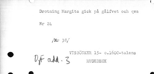 //// Drotning Margita gick på gålfvet och qva //// Nr 24 //// /Nr 38 //// /. //// ^ ^ VISBCCKER 15- o.léOC-talens //// CL^ - ^ RUDEBECK ////