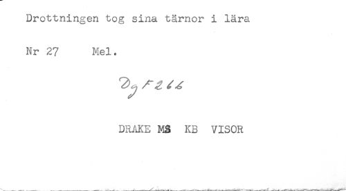 //// Drottningen tog sina tärnor i lära //// Nr 27 Mel. //// DRAKE MS KB VISOR ////