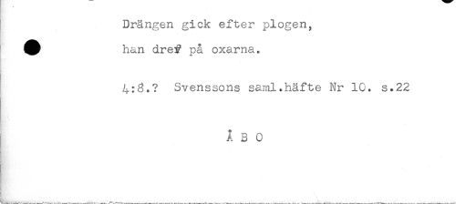 //// Drängen gick efter plogen, //// ! //// ! han dref på oxarna. //// . //// & //// 4:3.? Svenssons saml.häfte Nr 10. s.22 //// ÅBO ////