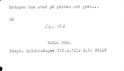 //// Drängen han stod på gården och grät... //// Sk //// NORD. MUS. //// Mskpt. Soldatsånger III.s.701$ E.U. 28113 //// t ////