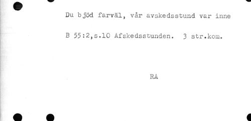 //// Du bjöd farväl, vår avskedsstund var inne //// B 55:2,s.lO Afskedsstunden. 3 str.kom. //// r'* //// RA ////