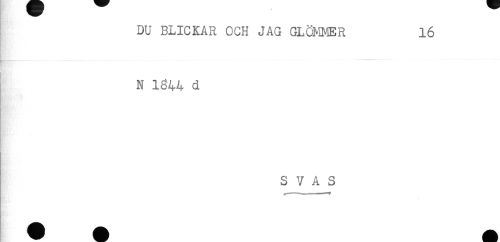 //// DU BLICKAR OCH JAG GLÖMMER .16 //// N 1644 d //// S V A S ////