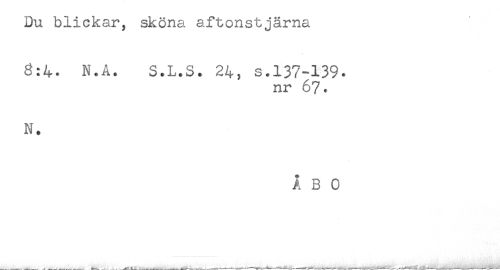 //// Du blickar, sköna aftonstjärna //// 8:4. N.A. S.L.S. 24, s.137-139. //// nr 67. //// N. //// ÅBO //// __. ^___ . . _____.. M-.____ _ ^ _____' ---^-.--- ---i*,---A----^---- ////
