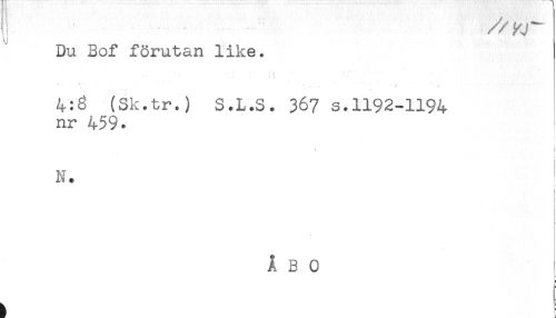 //// Du Bof förutan like. //// ! ' //// 4:8 (Sk.tr.) S.L.S. 367 s.1192-1194 //// nr 459. //// t //// '' ! //// N. //// i //// t ////