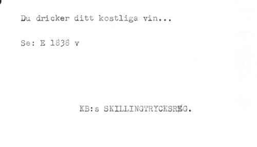 //// Du dricker ditt kostliga vin... //// Se: E 1838 v //// KB:s SKILLINGTRYCKSREG. ////