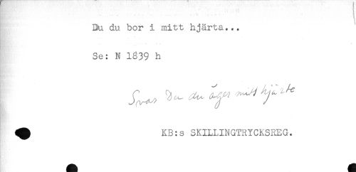 //// * ) t //// Bn du bor i mitt hjärta... //// v t //// Se: N 1839 h //// ^ KB:s SKILLINGTRYCKSREG. ////