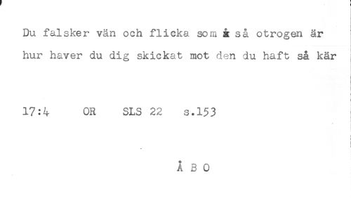 //// Du fal sker vän och flicka som å så otrogen är //// , L //// hur haver du dig skickat mot den du haft så kär i //// * //// ! //// i //// t //// : //// i //// ) //// ' //// 17:4 OR SLS 22 s.153 //// < //// < ; //// ) //// t //// < //// i //// i //// ! ////