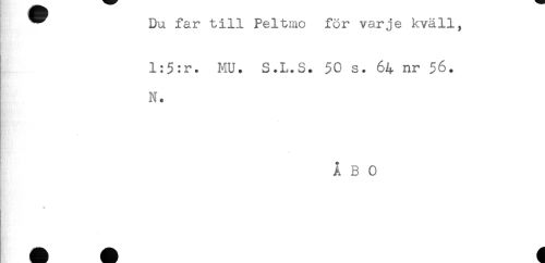 //// ^ Du far till Peltmo för varje kväll, //// l:5:r. MU. S.L.S. 50 s. 64 nr 56. //// N. //// ÅBO ////