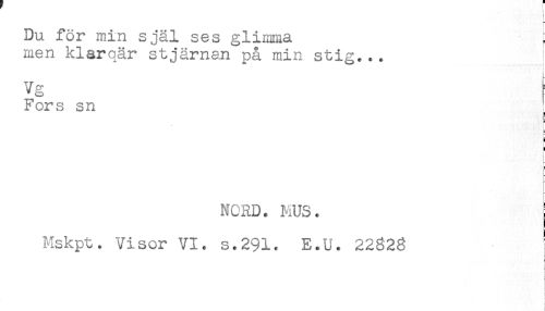 //// Du för min själ ses glimma ; //// men klarqär stjärnan på min stig,., ! //// Vg //// Fors sn //// c //// § //// } //// NORD. MUS. //// Mskpt. Visor VI. s.291. E.U. 2282g ////