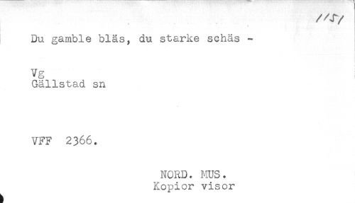 //// /AT //// /Du gamble bläs, du starke schäs - //// Vg //// Gällstad sn //// VFF 2366. //// NORD. MUS. //// Kopior visor ////