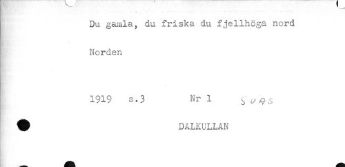 //// .... .t ... ^ * ' - - . -- - - - - - //// Du gamla, du friska du fjellhoga nord //// Norden //// . //// 1919 s.3 Nrl , ^ //// # DALKULLAN //// . ////