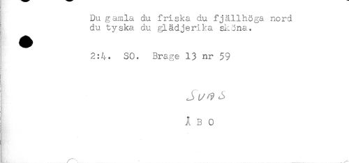 //// Du gamla du friska du fjällhöga nord //// du tyska du glädjerika skona. //// I 2:4. SO. Brage 13 nr 59 //// Hi //// < //// j - p ^ //// ! //// K //// ÅBO //// / ....... . - ////