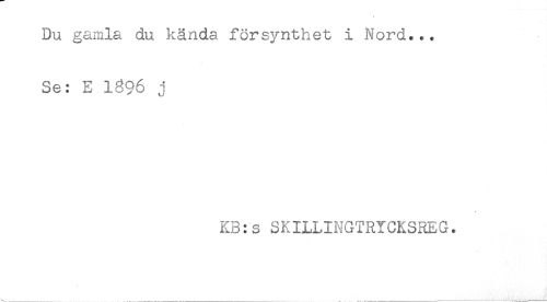//// Du gamla du kända försynthet i Nord... //// Se: E 1896 j //// KB:s SKILLINGTRYCKSREG. ////