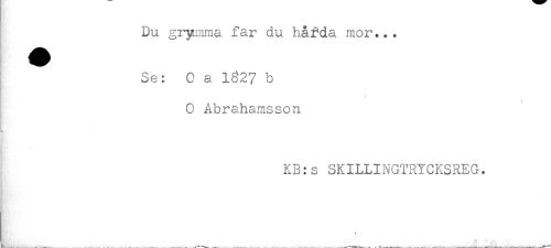 //// Du grymma far du håfda mor... //// Se: Ca 1327 b //// i //// O Abrahamsson //// r //// KB:s SKILLINGTRYCKSREG. ////