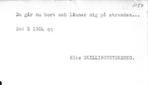 //// Du går nu bort och lämnar mig på stranden... //// : //// T //// Se: E 1904 qq //// i //// ] //// KB:s SKILLINGTRYCKSREG. ////