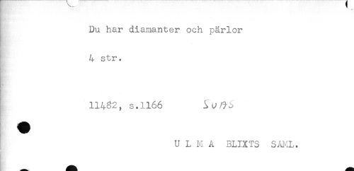 //// Du har diamanter och pärlor //// 4 str. //// 11432, s.1166 //// - ////