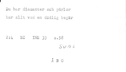//// Du har diamanter och pärlor //// har allt vad en dödlig begär //// 2:4 EC INE 33 s.58 //// 5 ^ ^ //// Å30 ////