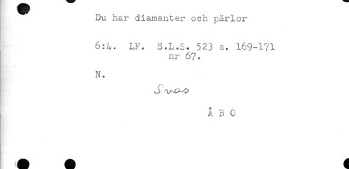 //// Du har diamanter och pärlor //// 6:4. LF. S.L.S. 523 s. 169-171 //// nr 67. //// N. //// ÅBO ////