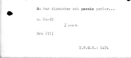 //// Bu har diamanter och x&xsiE perlor.*. //// s. 24-25 //// Ks * //// Bro (VI) //// I.F.G.H.: 1474 ////