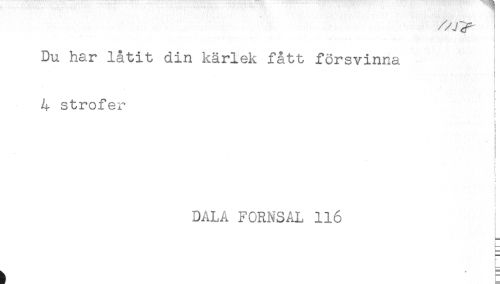//// Du har låtit din kärlek fått försvinna //// , . t //// . //// 4 strofer //// ! //// - //// t //// f //// DALA FORNSAL 116 ////