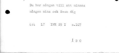 //// Du har mången till att minnas //// ^ mången mins ock även dig //// 4:4 LT INE 29 I s.107 //// Å B 0 //// L^..... ////