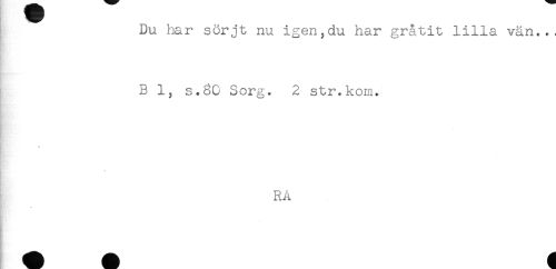 //// Du har sörjt nu igen,du har gråtit lilla vän.. //// Bl, s.8C Sorg. 2 str.kom. //// . //// * //// RA ////