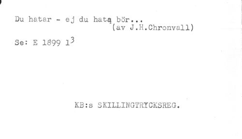 //// Du hatar - ej du hatq bör... //// (av J.H.Chronvall) ! //// Se: E 1899 //// KB:s SKILLINGTRYCKSREG. ////