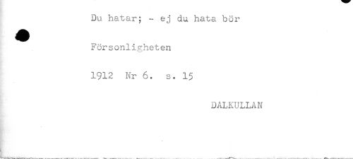 //// Du hatar; - ej du hata bör //// Försonligheten //// 1912 Nr 6. s. 15 //// DALKULLAN //// KR* ////