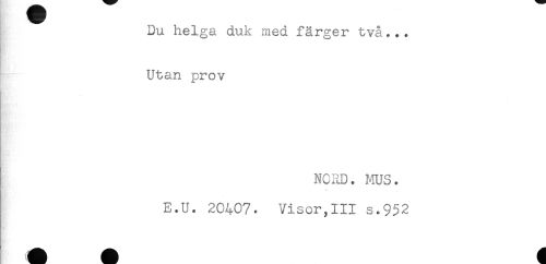 //// Du helga duk med färger två... //// Utan prov //// Hjw A : //// NORD. MUS. //// V" //// v //// E.U. 20407. Visor,III s.952 ////